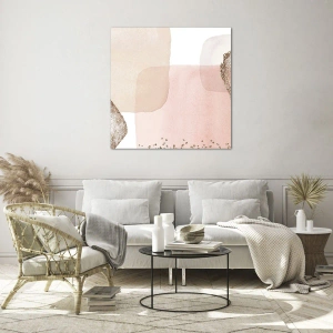 Cuadro sobre vidrio - Impresiones sobre Vidrio - Una composición abstracta en tonos rosa, beige y dorado. - 120x80cm - Una mirada a través del color - Decoración de pared moderna para salón y dormitorio ARTTOR
