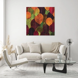 Cuadro sobre vidrio - Impresiones sobre Vidrio - Hojas coloridas dispuestas en un patrón otoñal. - 80x120cm - Mosaico de otoño - Decoración de pared moderna para salón y dormitorio ARTTOR