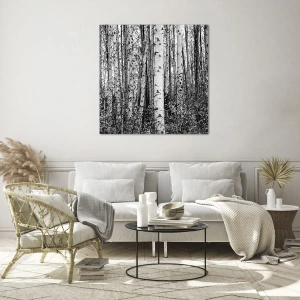 Cuadro sobre vidrio - Impresiones sobre Vidrio - Abedules blancos y negros en el bosque - 80x120cm - Columnas de abedules - Decoración de pared moderna para salón y dormitorio ARTTOR