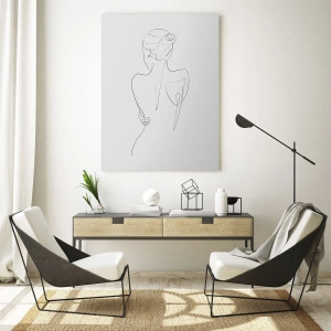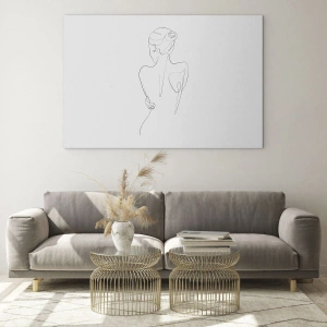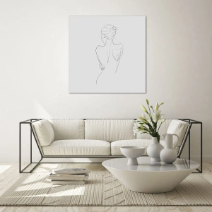 Cuadro sobre vidrio - Impresiones sobre Vidrio - Un delicado boceto de una sola línea de una mujer de espaldas. - 100x70cm - Música del cuerpo - Decoración de pared moderna para salón y dormitorio ARTTOR