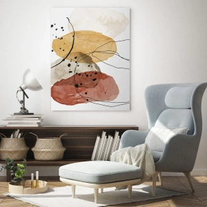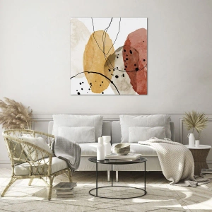Cuadro sobre vidrio - Impresiones sobre Vidrio - Manchas abstractas de color tierra con líneas finas - 120x80cm - Líneas y transparencias - Decoración de pared moderna para salón y dormitorio ARTTOR