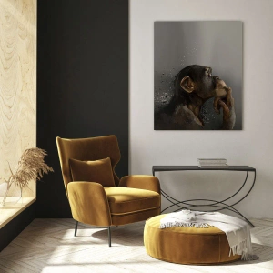 - Retrato artístico de un mono en pose pensativa, creado digitalmente con efecto salpicado. El fondo oscuro y la sutil iluminación realzan la naturaleza filosófica de la composición. Esta pintura es perfecta para interiores con un toque de reflexión y hu...