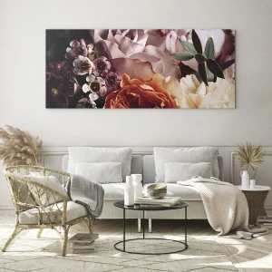 Cuadro sobre vidrio - Impresiones sobre Vidrio - Un primer plano de una colorida composición floral. - 140x50cm - Belleza envolvente - Decoración de pared moderna para salón y dormitorio ARTTOR