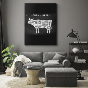 Cuadro sobre lienzo - Impresión de Imagen - Diagrama de cortes de carne de res sobre un fondo negro - 120x80cm - Manual del carnicero - Decoración de pared moderna para salón y dormitorio ARTTOR