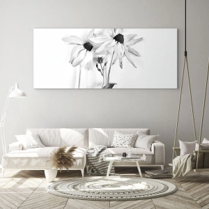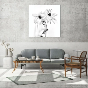 Cuadro sobre vidrio - Impresiones sobre Vidrio - Flores en blanco y negro en estilo minimalista. - 70x50cm - Nadie quiere estar solo - Decoración de pared moderna para salón y dormitorio ARTTOR