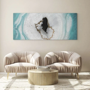 - La pintura representa una composición abstracta inspirada en la sección transversal natural de una geoda, con intensos detalles en turquesa, blanco y dorado. Su forma moderna y su llamativo diseño resultan llamativos y aportan elegancia a cualquier int...