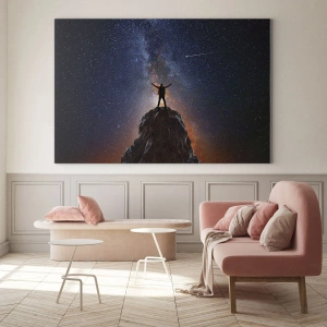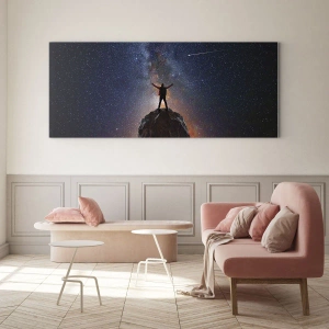 Cuadro sobre vidrio - Impresiones sobre Vidrio - Silueta de un hombre en la cima de una roca bajo un cielo estrellado - 120x80cm - ¡El poder está conmigo! - Decoración de pared moderna para salón y dormitorio ARTTOR