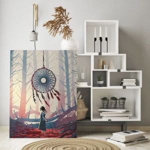 Esta extraordinaria pintura combina elementos de la naturaleza con simbolismo ritual. Un atrapasueños suspendido en el aire puede interpretarse como protección contra el mal, una guía para un viaje interior o un signo de una conexión mágica con el mundo espiritual. El color rojo de las hojas contrasta con los tonos fríos del bosque, creando tensión y dramatismo. Esta pintura es ideal para espacios que requieren contemplación y tranquilidad, como dormitorios, zonas de relajación, bibliotecas domésticas o salas de terapia. Aporta no solo estética al interior, sino también un mensaje más profundo: la necesidad de contacto con la naturaleza, la espiritualidad y la paz interior. Las decoraciones de pared de este tipo inspiran reflexión y crean una atmósfera única. La pintura sobre vidrio fue creada sobre vidrio de 70 x 50 cm en horizontal. Producida por la reconocida marca ARTTOR, garantiza materiales de alta calidad y una artesanía precisa. Ofrece colores intensos, un brillo sutil y durabilidad, lo que la convierte en un elemento decorativo moderno y único. "El Ritual Secreto de la Felicidad" no es solo una composición visual: es una historia artística sobre la intuición, la naturaleza y la magia de los rituales cotidianos. Esta es una pintura para quienes buscan emoción, paz y un mensaje espiritual en el arte.