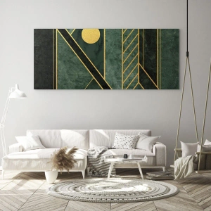 Cuadro sobre vidrio - Impresiones sobre Vidrio - La dinámica del oro y el azul - 100x40 cm