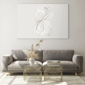 El cuadro sobre el vidrio está hecho de cristal con un grosor de 4 mm. Los bordes tienen un corte trapezoidal mate. El cuadro es seguro y llega listo para ser colgado: posee colgadores metálicos fijados en la parte posterior del cuadro y distanciadores de espuma que regulan la distancia uniforme entre el cuadro y la pared.