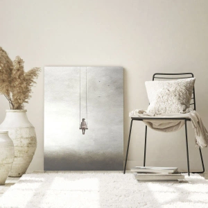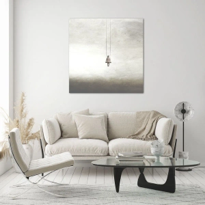 Cuadro sobre vidrio - Impresiones sobre Vidrio - Una figura en un columpio suspendido en el cielo. - 50x70cm - El niño que llevamos dentro - Decoración de pared moderna para salón y dormitorio ARTTOR