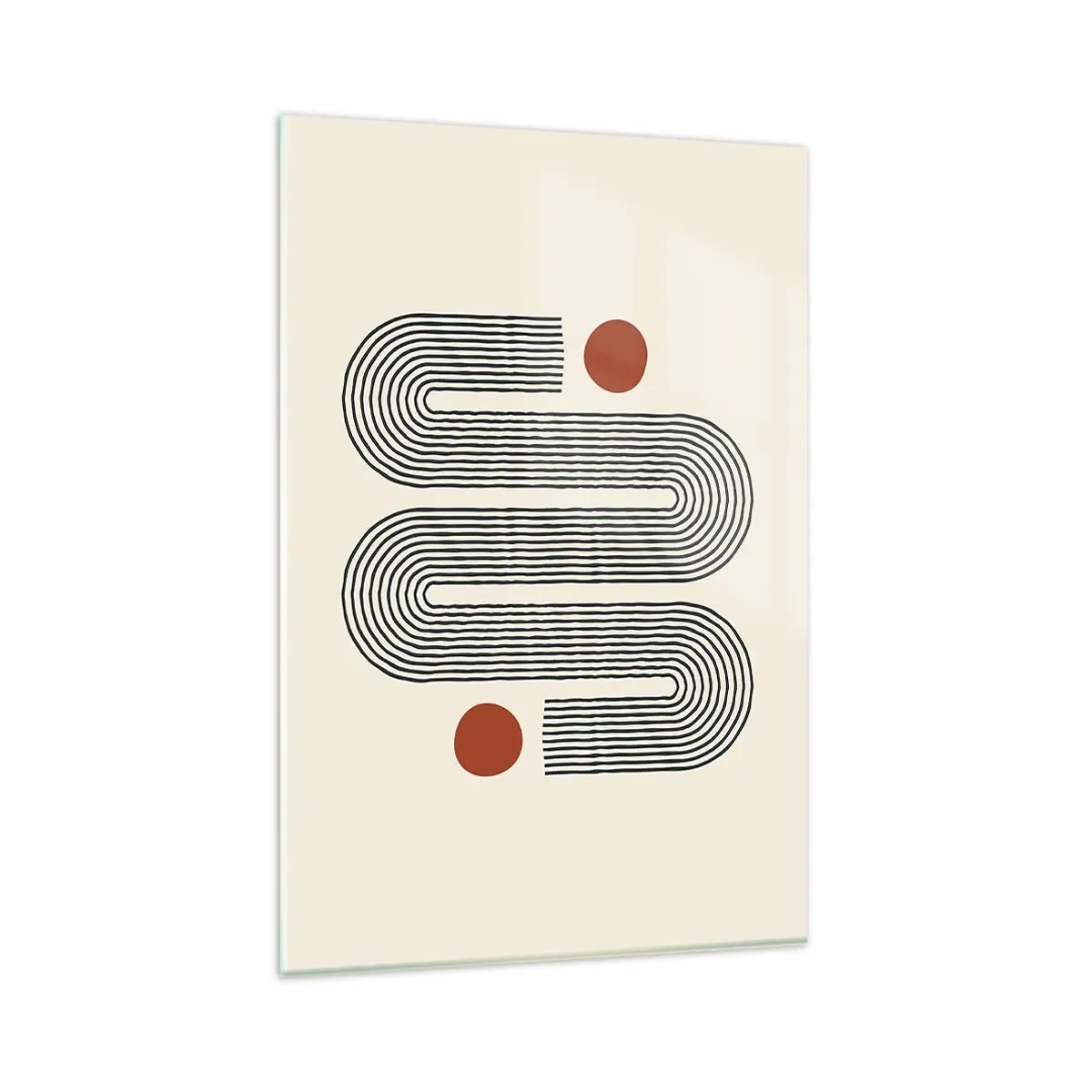 Cuadro sobre vidrio - Impresiones sobre Vidrio - Patrón geométrico con líneas y círculos naranjas. - 80x120cm - De principio a fin - Decoración de pared moderna para salón y dormitorio ARTTOR