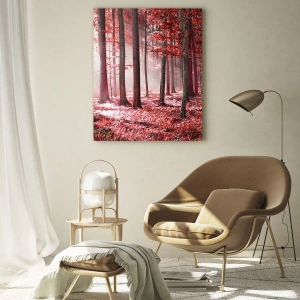 - Una impresionante imagen de un bosque en tonos rojos y rosas con la niebla matutina de fondo. Una decoración perfecta para interiores que buscan calidez, armonía y un toque natural. La pintura irradia la tranquilidad y la atmósfera de una mañana de otoño.