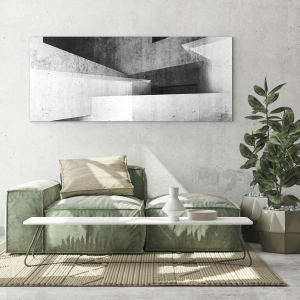 Cuadro sobre vidrio - Impresiones sobre Vidrio - Formas geométricas en una composición monocromática - 80x120cm - La estructura del espacio - Decoración de pared moderna para salón y dormitorio ARTTOR