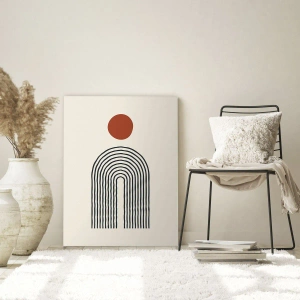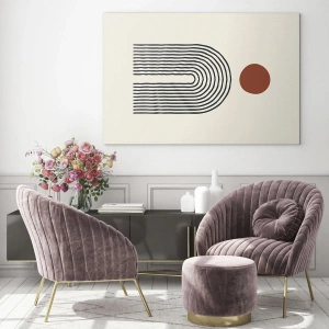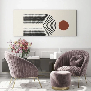 Cuadro sobre vidrio - Impresiones sobre Vidrio - Patrón abstracto moderno con líneas y un círculo rojo. - 120x50cm - Magnetismo de formas y colores - Decoración de pared moderna para salón y dormitorio ARTTOR