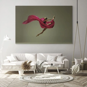Cuadro sobre vidrio - Impresiones sobre Vidrio - Una bailarina en vuelo con una tela fucsia fluida. - 100x70cm - Llama danzante - Decoración de pared moderna para salón y dormitorio ARTTOR