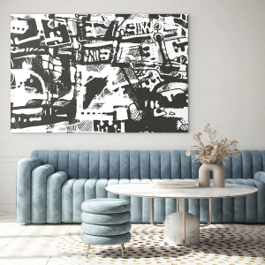 Cuadro sobre vidrio - Impresiones sobre Vidrio - Patrón retro monocromático abstracto - 70x100cm - ¿Orden o caos? - Decoración de pared moderna para salón y dormitorio ARTTOR