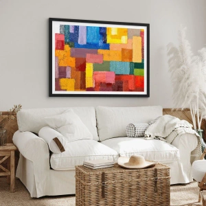 - Este póster presenta rectángulos abstractos y coloridos que crean una composición armoniosa. Es la opción perfecta para interiores que rebosan creatividad y arte. Incluye un marco negro y mide 50 x 70 cm.