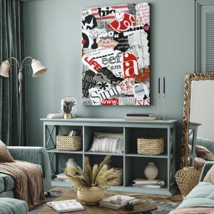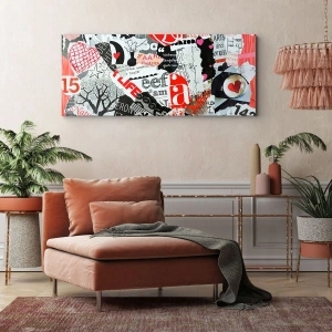 Cuadro sobre lienzo - Impresión de Imagen - Un collage colorido con inscripciones, corazones y gráficos. - 120x50cm - Collage hipster - Decoración de pared moderna para salón y dormitorio ARTTOR