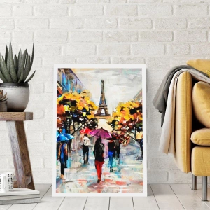 Póster - La Torre Eiffel en un paisaje otoñal con sombrillas de colores. - 50x70cm - Especialmente hermoso en otoño - Decoración de pared moderna para salón y dormitorio ARTTOR
