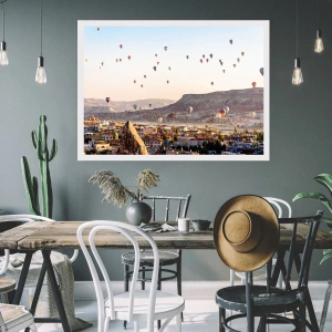 Póster - Capadocia con globos con el telón de fondo de pintorescas colinas. - 100x70cm - Surcando los cielos - Decoración de pared moderna para salón y dormitorio ARTTOR
