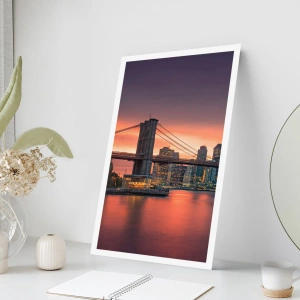 Póster - Puente de Brooklyn de noche con la ciudad iluminada al fondo - 50x70cm - Ahogado en el silencio lila - Decoración de pared moderna para salón y dormitorio ARTTOR