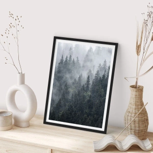Póster en marco negro - Amanecer en el bosque - 40x50 cm