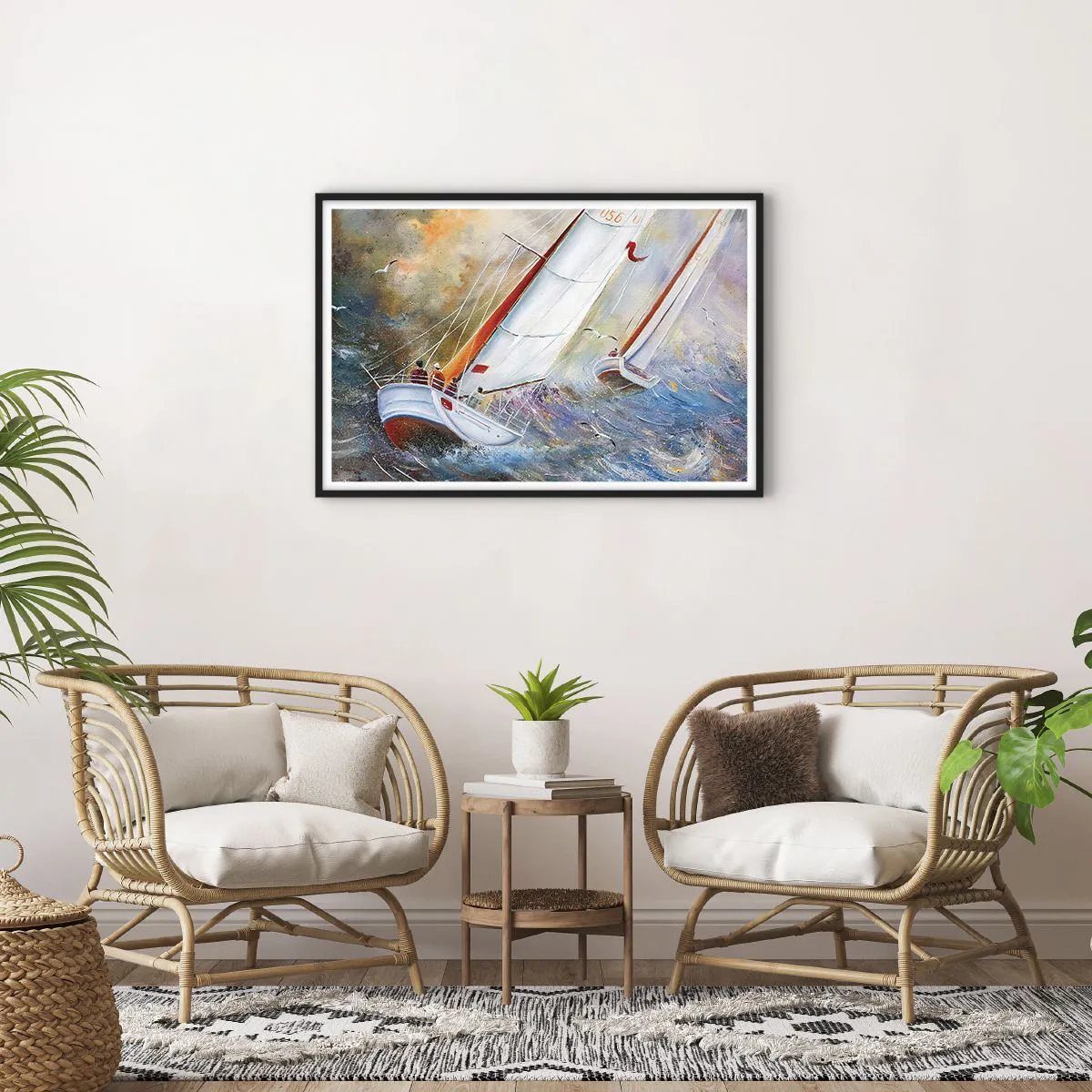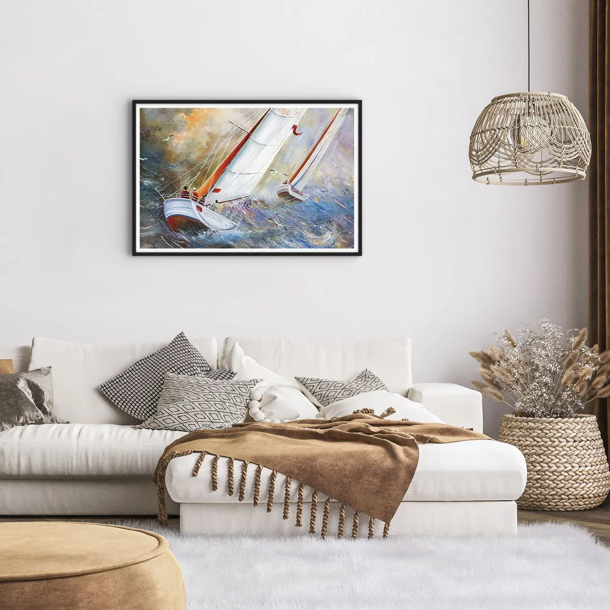 Póster en marco negro - Surcando las olas - 91x61 cm