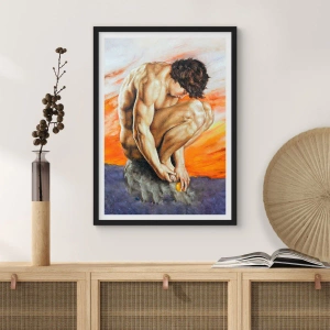 Póster en marco negro - Un hombre perdido en sus pensamientos con el telón de fondo de una puesta de sol. - 100x70cm - Sumergido en sí mismo - Decoración de pared moderna para salón y dormitorio ARTTOR