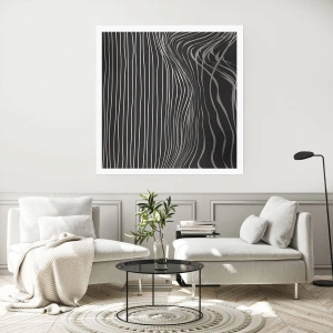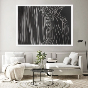 Póster - Líneas blancas sobre un fondo gris oscuro en una disposición abstracta. - 100x70cm - Ritmo y acento - Decoración de pared moderna para salón y dormitorio ARTTOR