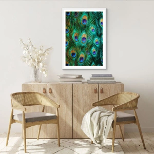 Póster en marco blanco - Mirada de pavo real - 91x61 cm