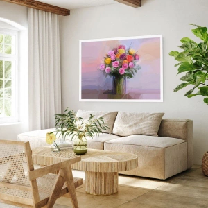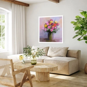 Póster - Un ramo de rosas y flores en un jarrón de cristal. - 50x70cm - Belleza inmortalizada - Decoración de pared moderna para salón y dormitorio ARTTOR
