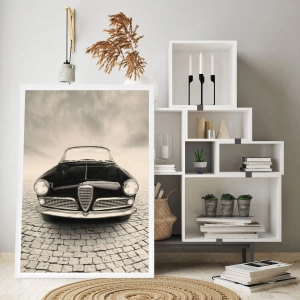 Póster - El frente de un coche clásico en una calle adoquinada - 50x70cm - ¿Y cómo no quererme? - Decoración de pared moderna para salón y dormitorio ARTTOR