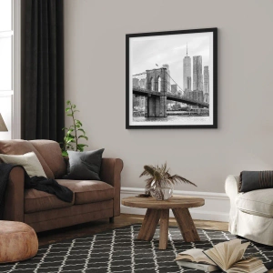 Póster en marco negro - Puente de Brooklyn con rascacielos de Nueva York al fondo - 100x70cm - Vibraciones de Nueva York - Decoración de pared moderna para salón y dormitorio ARTTOR