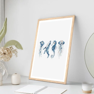 Póster en marco roble claro - Fauna marina - 60x60 cm