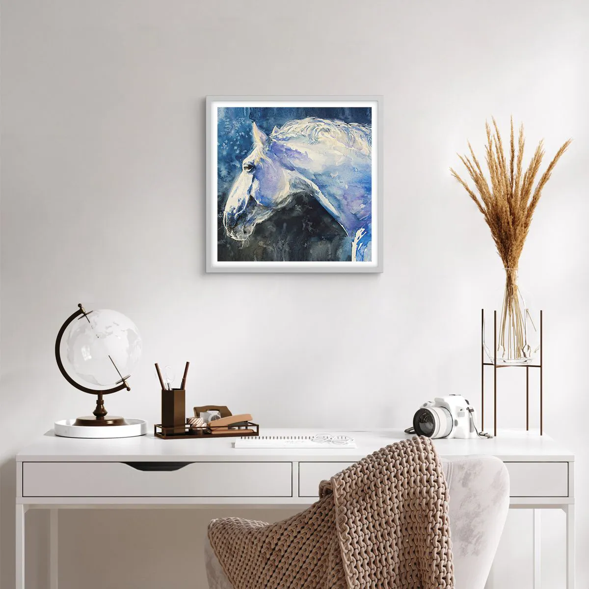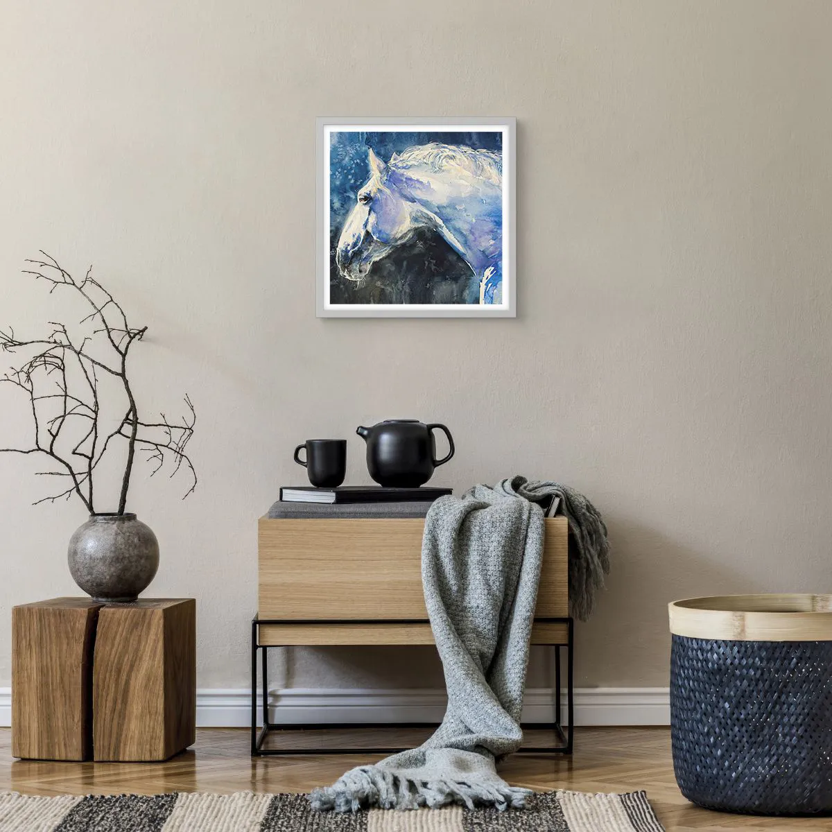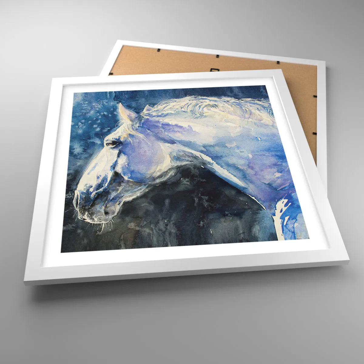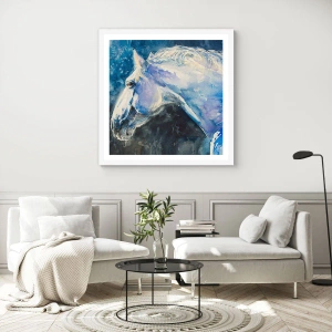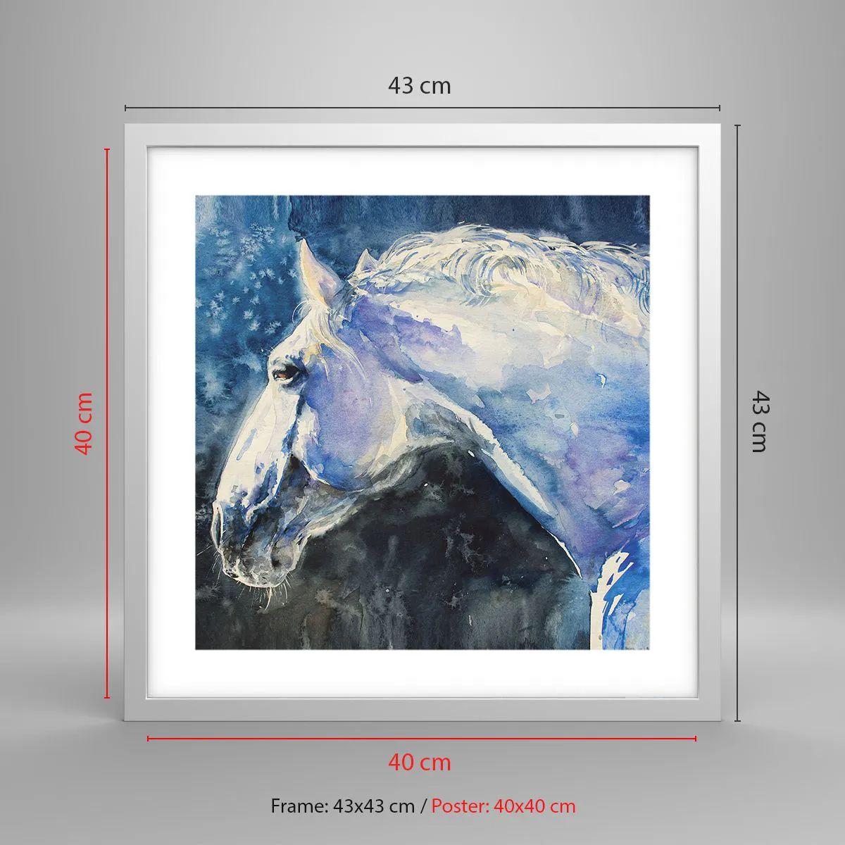 Póster en marco blanco - Retrato en un resplandor azul - 40x40 cm