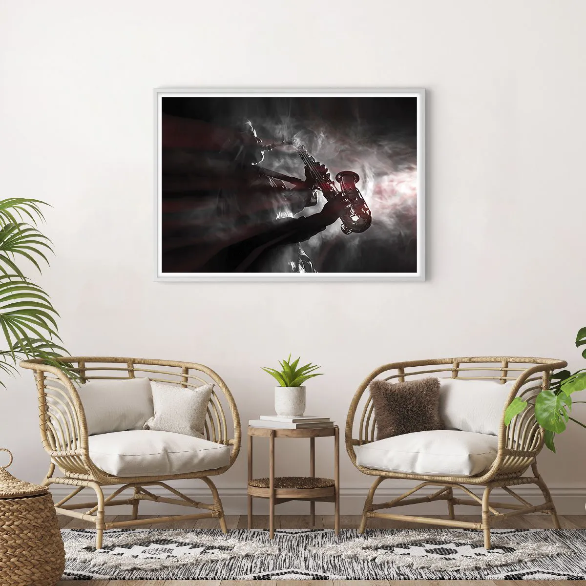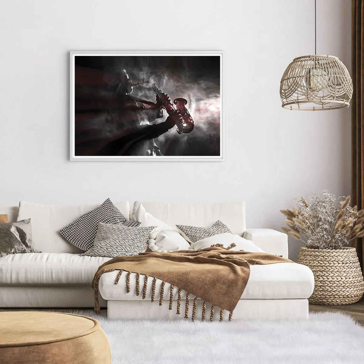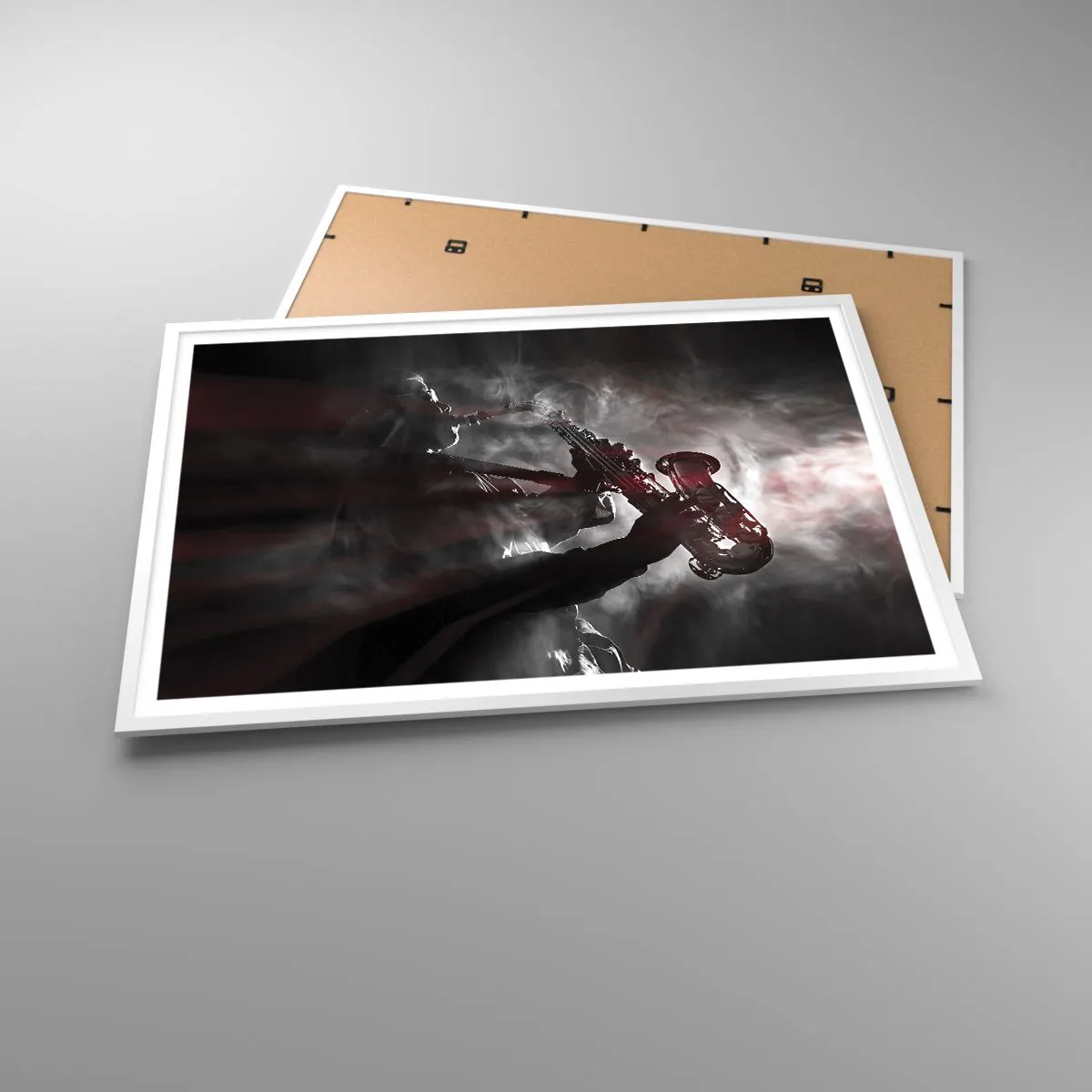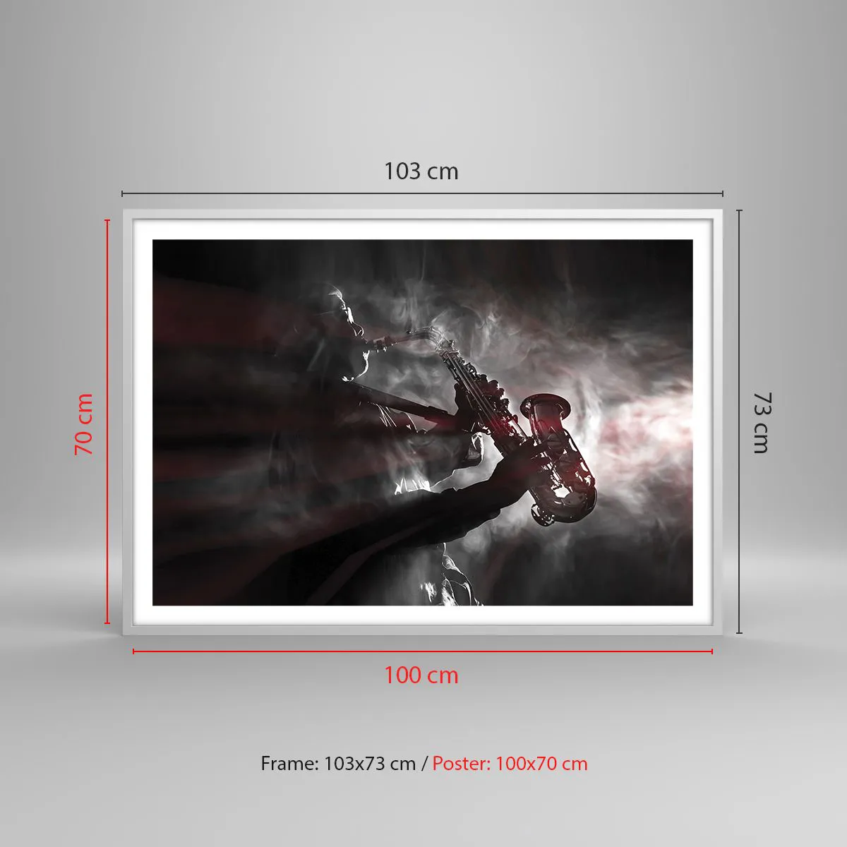 Póster en marco blanco - En el vapor del jazz - 100x70 cm