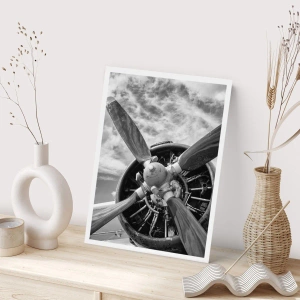 Póster - Una fotografía en blanco y negro de la hélice de un avión contra un cielo dinámico. - 100x70cm - Conquistador de los cielos - Decoración de pared moderna para salón y dormitorio ARTTOR