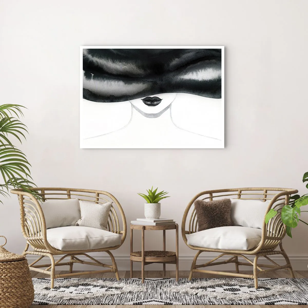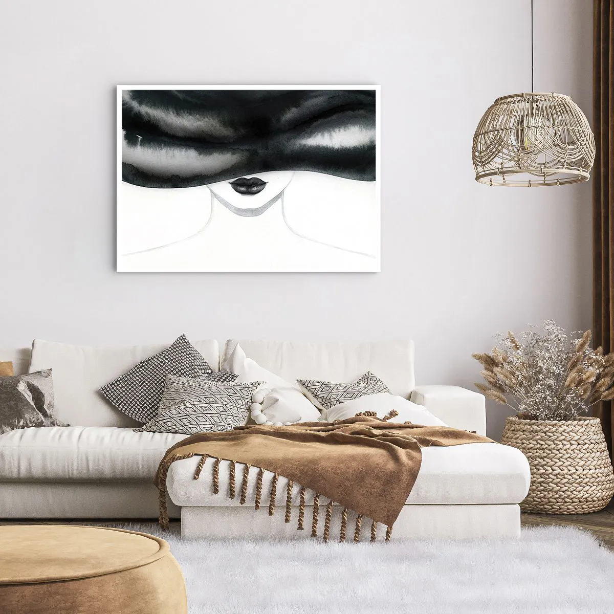 Póster - Un retrato sutil de una mujer con el rostro cubierto en un estilo monocromático. - 100x70cm - Un misterio sensual - Decoración de pared moderna para salón y dormitorio ARTTOR