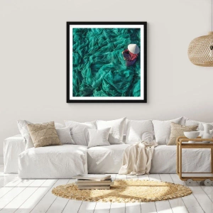 - El póster "En un Mar de Redes" muestra a una persona con sombrero rodeada de redes de pesca verdes. Un motivo exótico y artístico, perfecto para interiores modernos. El producto incluye un marco negro.