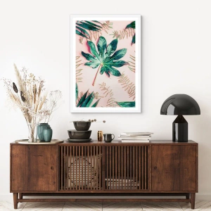 Póster en marco blanco - Estudio de vegetación sobre fondo rosa - 40x50 cm
