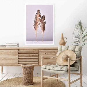 Póster - Plumas delicadas sobre un fondo claro en estilo minimalista. - 100x70cm - Contra la nada - Decoración de pared moderna para salón y dormitorio ARTTOR