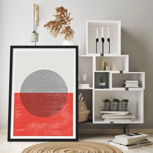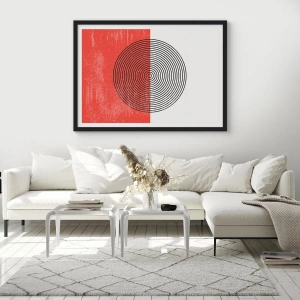 Póster en marco negro - Composición geométrica con círculos sobre fondo rojo y blanco. - 50x70cm - En el corazón de la misma - Decoración de pared moderna para salón y dormitorio ARTTOR