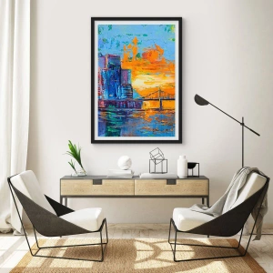 Póster en marco negro - Un puente colorido y la ciudad bajo el resplandor del sol poniente. - 50x70cm - Cultura y naturaleza - Decoración de pared moderna para salón y dormitorio ARTTOR