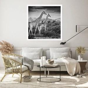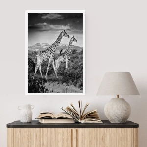 Póster - Siluetas en blanco y negro de dos jirafas en la sabana. - 100x70cm - La clase alta de África - Decoración de pared moderna para salón y dormitorio ARTTOR