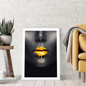Póster en marco blanco - Labios de oro - 91x61 cm