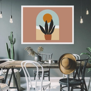 Póster - Una planta en maceta delante de un arco con una puesta de sol de fondo. - 50x70cm - Pequeñas alegrías - Decoración de pared moderna para salón y dormitorio ARTTOR