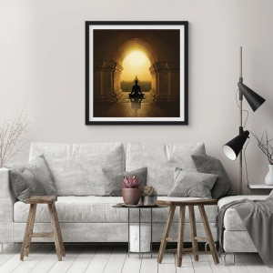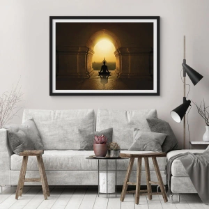 Póster en marco negro - Silueta de una persona meditando a la luz del sol poniente. - 70x50cm - Armonía total - Decoración de pared moderna para salón y dormitorio ARTTOR