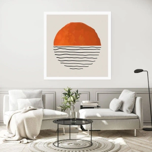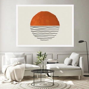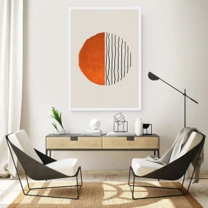 Póster - Círculo abstracto con naranja y mitad lineal. - 50x70cm - En un ambiente japonés - Decoración de pared moderna para salón y dormitorio ARTTOR