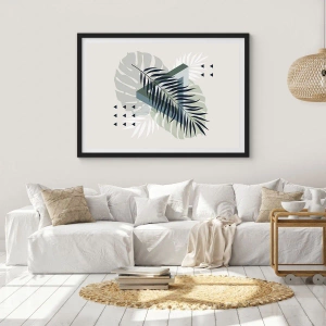 Póster en marco negro - Composición geométrica con hojas tropicales en tonos verdes. - 70x50cm - Naturaleza y geometría - Decoración de pared moderna para salón y dormitorio ARTTOR